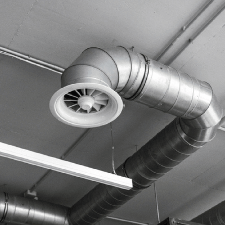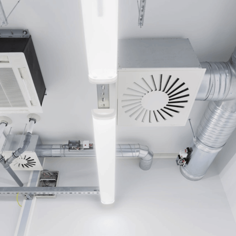 Señala la posición de ventiladores, filtros, unidades de tratamiento de aire