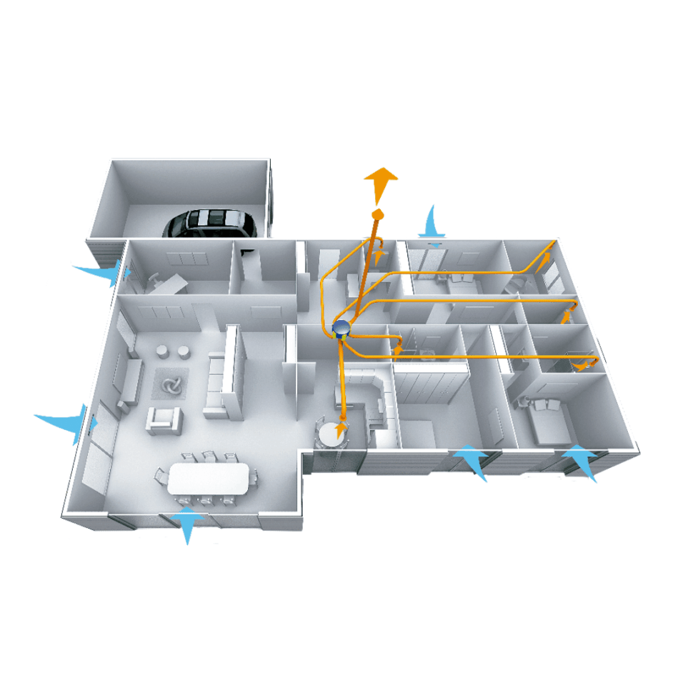 Sistema que regula la renovación del aire interior. Puede ser de simple flujo